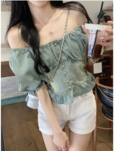 스퀘어넥 크롭 반팔 지퍼 블라우스